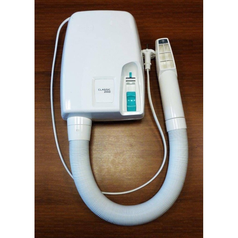 Asciugacapelli automatico con tubo flessibile per spogliatoio palestra e alberghi. Rispondente alle Norme IP24 CE. Apparecchio già collaudato in fase di montaggio, verificandone funzionalità e sicurezza.