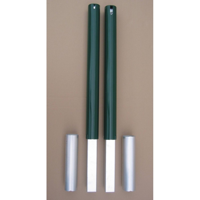 Impianto tennis modello "all aluminium" costruito integralmente in lega di alluminio sez. ovale 120x100 mm.. Nuova sezione rinforzata per dare più stabilità e robustezza all'impianto, bussole in alluminio, rinforzo centrale in robusta sezione di alluminio lega speciale 6005 antiflessione.
