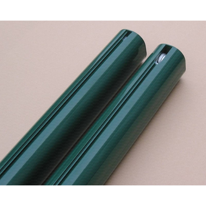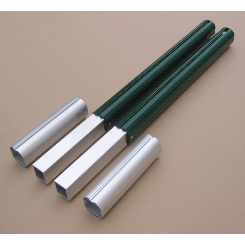 All'estremità superiore del palo tappo in alluminio tagliato al laser; gancio per applicazione della rete ed astina in acciaio in dotazione.