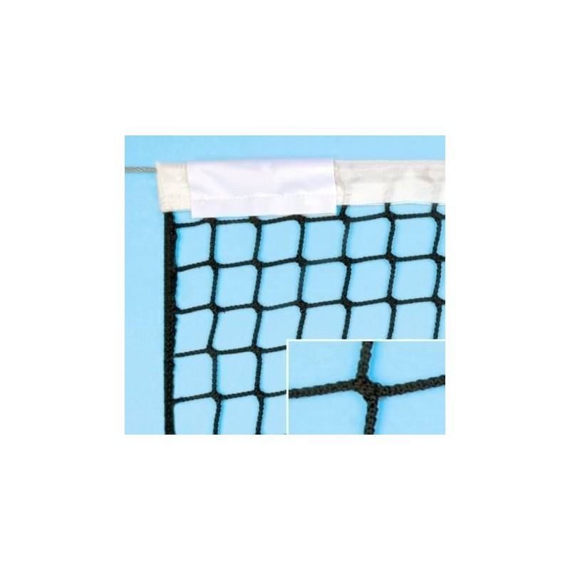 Rete recinzione per campi sportivi, adatta particolarmente per campi da tennis e beach tennis, sia ad uso professionale che privato. Ideale per utilizzo in esterno. Realizzata su misura. Maglia quadrata con nodo cm 4,5x4,5.