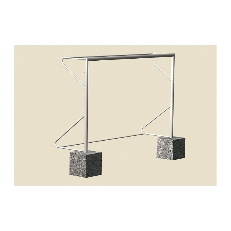 Porta SINGOLA da calcetto mt. 3x2 in acciaio sez. mm 80 verniciate a fuoco, smontabili, da fissare a terra tramite l'inserimento in speciali bussole (in dotazione) precedentemente da cementare nel terreno.