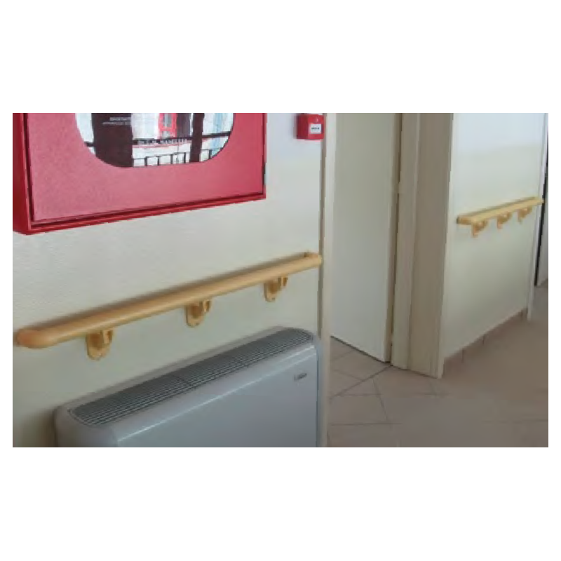Il corrimano è applicabile con normali tasselli ad espansione (non inclusi). Buona resistenza UV in interno. É resistente alla disinfezione chimica meccanica.