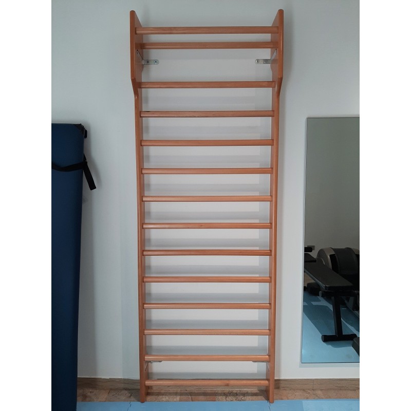 Spalliera svedese a 2 campate cm 180x250 di altezza in legno di faggio di prima scelta, verniciato al naturale con pioli a sezione ovoidale. La spalliera risponde alle NORME UNI in merito alla sicurezza per l'uso negli ambienti sportivi pubblici.