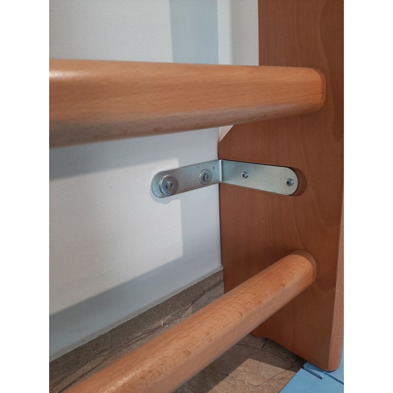 Spalliera svedese ad 1 campata cm 90 x 250 altezza in legno di faggio verniciato al naturale con longheroni da mm 90x50 e pioli a sezione ovoidale.
