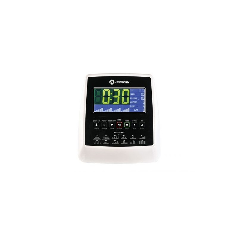 La console LCD da 5,8″ permette di monitorare tempo, distanza, velocità, calorie, pulsazioni e altri dati, con 16 programmi preimpostati e compatibilità con fascia cardio Polar T34/H10. Il sistema di resistenza magnetica ECB offre 16 livelli regolabili, silenziosi e senza manutenzione. Compatta e stabile, la Syros Pro Horizon è perfetta per allenarsi comodamente a casa.
