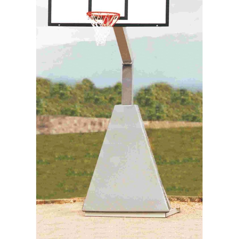 Impianto Pallacanestro a traliccio singolo (1 struttura) in acciaio zincato trasportabile. Con cassoni portazavorra in lamiera di acciaio zincata predisposti per il fissaggio alla base dell'impianto. Dispositivo di trasporto a leva con ruote gommate.