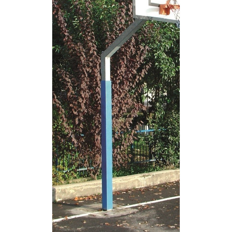 Impianto Pallacanestro monotubo SINGOLO, composto da una struttura, da esterno. Palo da fissare a terra tramite l'inserimento in speciale bussola (in dotazione) precedentemente da cementare nel terreno. Sbalzo cm 225. CERTIFICATO UNI-EN 1270