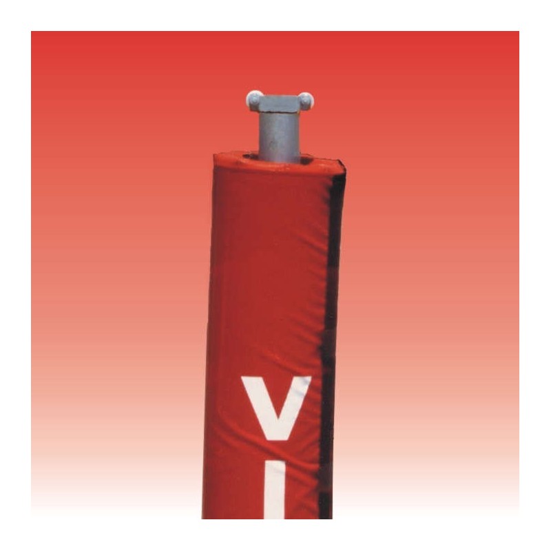 Protezioni antinfortunistiche impianto pallavolo a norme F.I.V.B. serie A1 A2 monotubo diametro mm 120x100 in gommilene espanso con fodera in tessuto btex con chiusura con velcro. Con apposito foro per inserimento della manovella tendirete