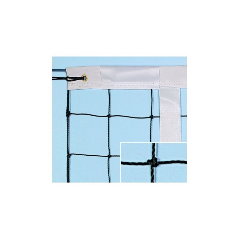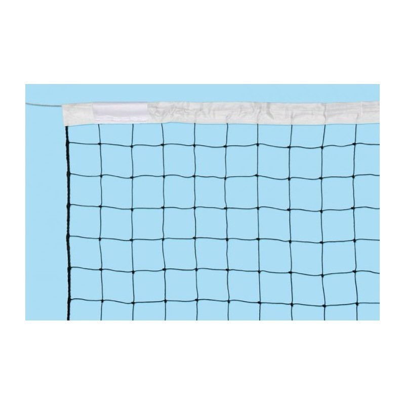 Rete pallavolo regolamentare mod. Torneo Super. Realizzata in polietilene spessore mm 35 ad alta tenacità e stabilizzata UV, idrorepellente, termofissata, lavorazione con nodo, maglia 100x100 mm colore nero.