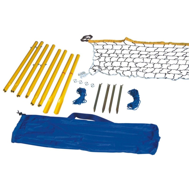 Impianto pallavolo e mini volley da prato e spiaggia somntabile e completo di comoda sacca a tracolla per il trasporto.