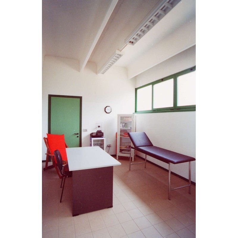 Lettino spogliatoio per infermeria e massagi a piano fisso, struttura in tubolare di acciaio verniciato a polveri epossidiche diam mm 50. Piano rigido imbottito e ricoperto in skay.