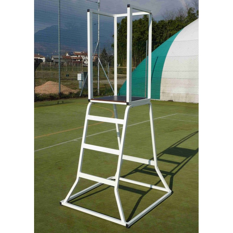Palchetto per arbitro pallavolo con struttura completamente in alluminio, piano in resistente multistrato fenolico adatto anche per esterno, piedini a terra regolabili.