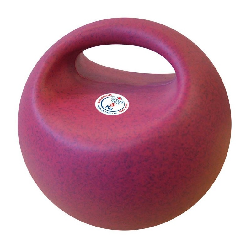 Palla medica con maniglia integrata OVER Kg 5 TRIAL, realizzata in gomma e materiali atossici. Diametro cm 19; colore cremisi.