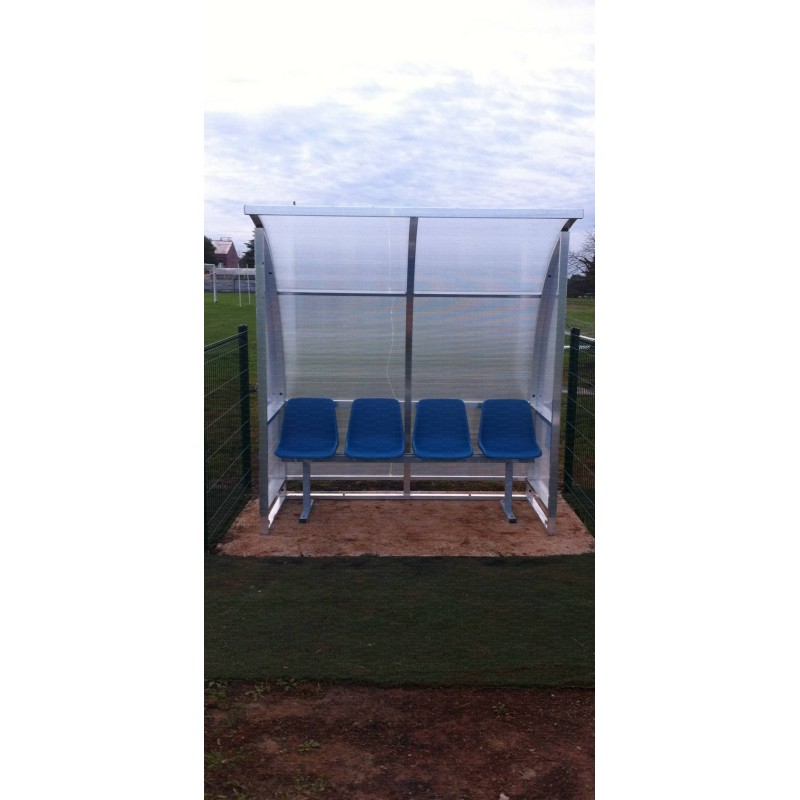Panchina Calcio mt. 4 modello "Strong" con struttura curva in ALLUMINIO ricoperta in policarbonato TRASPARENTE. Per allenatore e riserve.