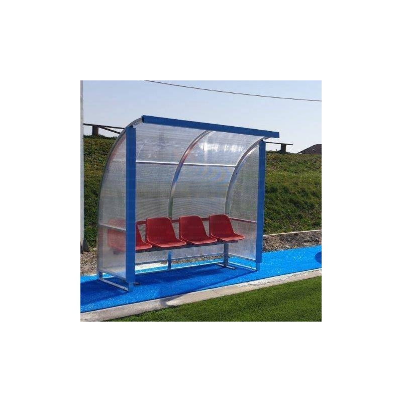 Panchina Calcetto mt. 3 modello "Standard" con struttura curva in ACCIAIO ricoperta in policarbonato ALVEOLARE semitrasparente. Per allenatore e riserve.