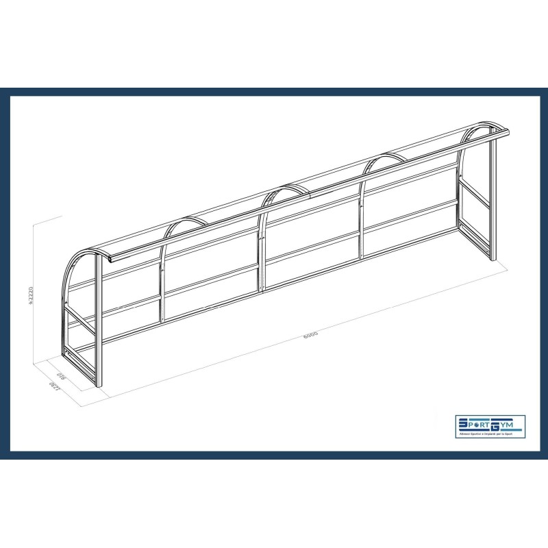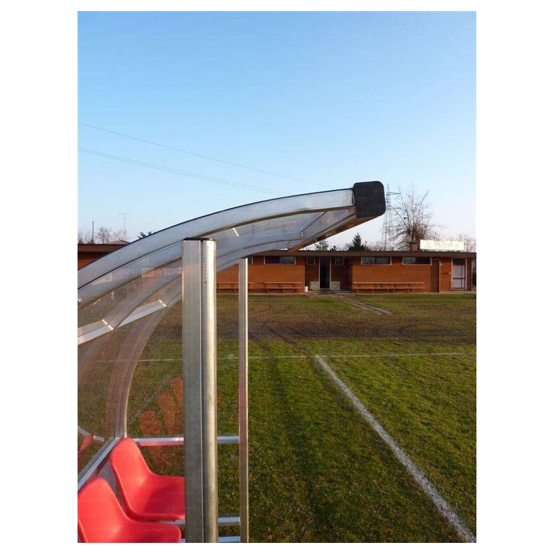 Panchina Calcio e Calcetto Mt. 12 con struttura curva Large (prof. curva cm 180) in ACCIAIO e copertura in policarbonato trasparente antiurto, per allenatore e riserve.