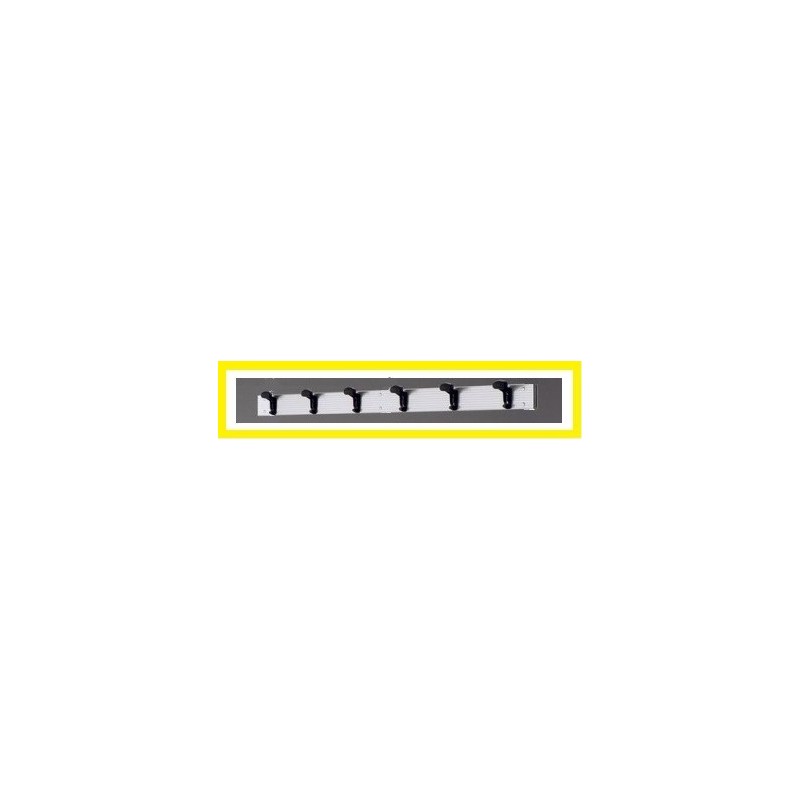 Appendiabiti da fissare a parete per panchine spogliatoio in ALLUMINIO con 6 grucce in pvc - Lunghezza mt. 2