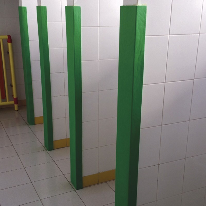 Protezione in EVA ad altissimo impatto ammortizzante 150 kg/mc per la protezione di aree di pericolo come spigoli, muri di recinzione, gradini, tubi, ecc. in ambienti privati e pubblici come impianti sportivi, palestre, asili e scuole, alberghi, luoghi di lavoro e parchi pubblici.
