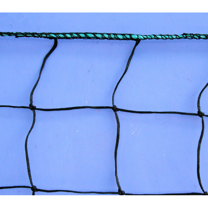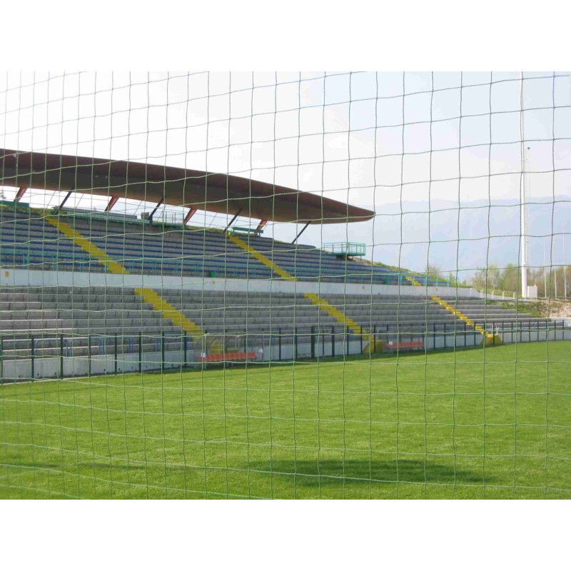 Rete recinzione per campi sportivi, adatta per campi da calcio, calcetto, pallavolo, beach volley, basket, sia ad uso professionale che privato. Ideale per utilizzo in esterno. Realizzata su misura. Maglia quadrata con nodo cm 13x13.